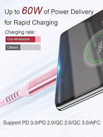 • 【60W 3A FAST CHARGING】 Output power up to 20V/3A(max), compatible with USB-C Power Delivery adapters such as 18W/30W/45W/60W. Recharge your devices up to 80 percent in 30 minutes. USB 2.0 data transfer speed can reach 40~60MB/S (480Mbps). **NOT support video output.