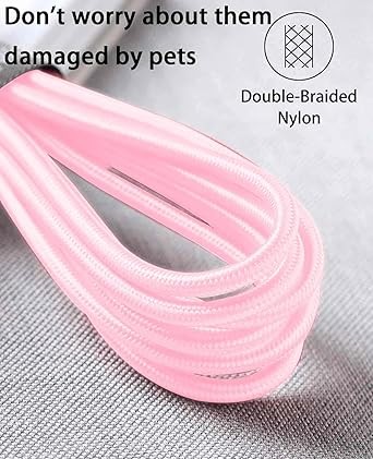 • 【Slimmer Yet Stronger】 Encased with pink Double-Braided Nylon fiber, which withstand up to 25,000 bends and even survive your pet's chewing.