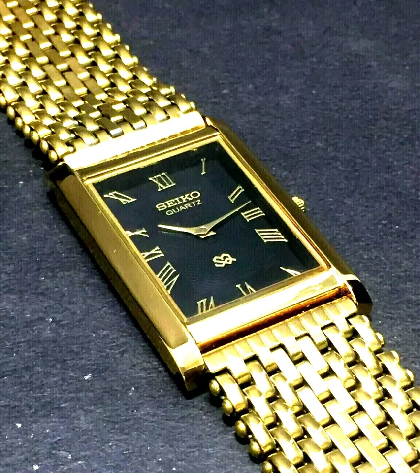 **Vintage Tank Rectangular Black Dial Milanese band Mens Watch New Mvt & Batt