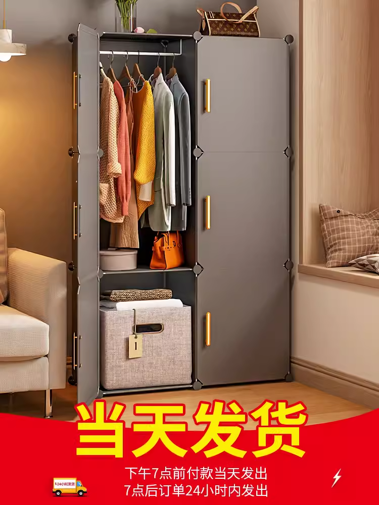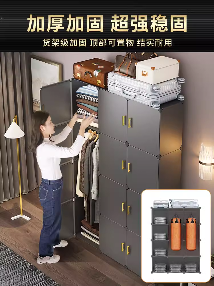 Wardrobe Home Bedroom Simple Assembly Cabinet Rental Housing Rack Economical Strong and Durable Cloth Wardrobe
