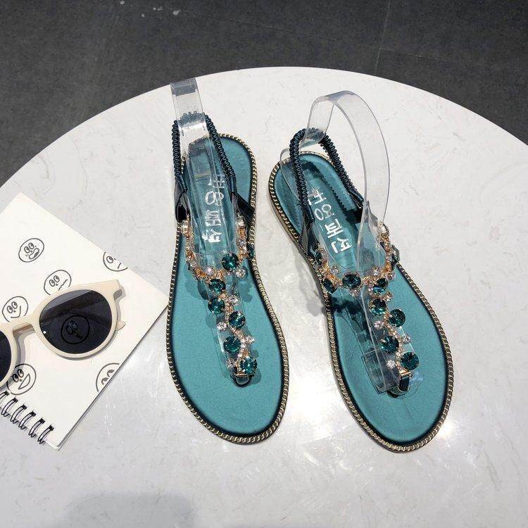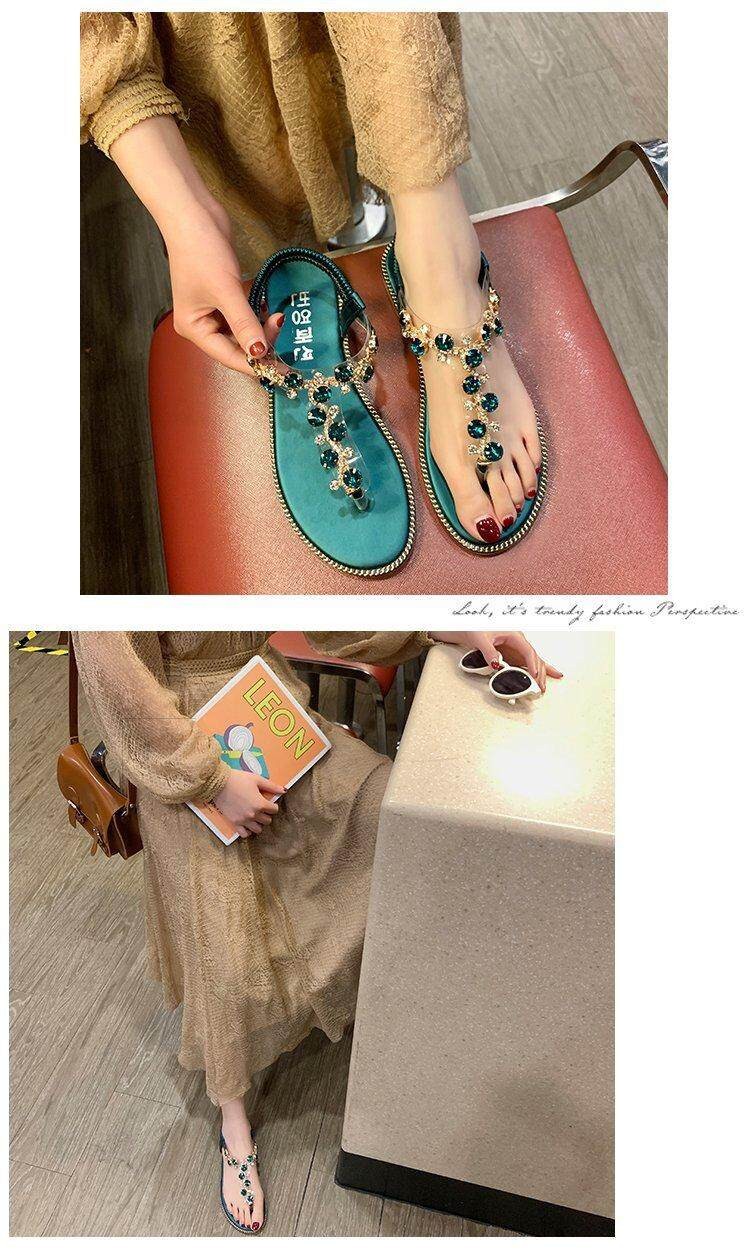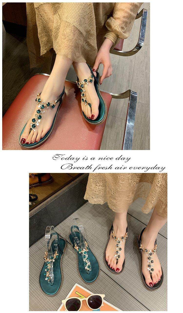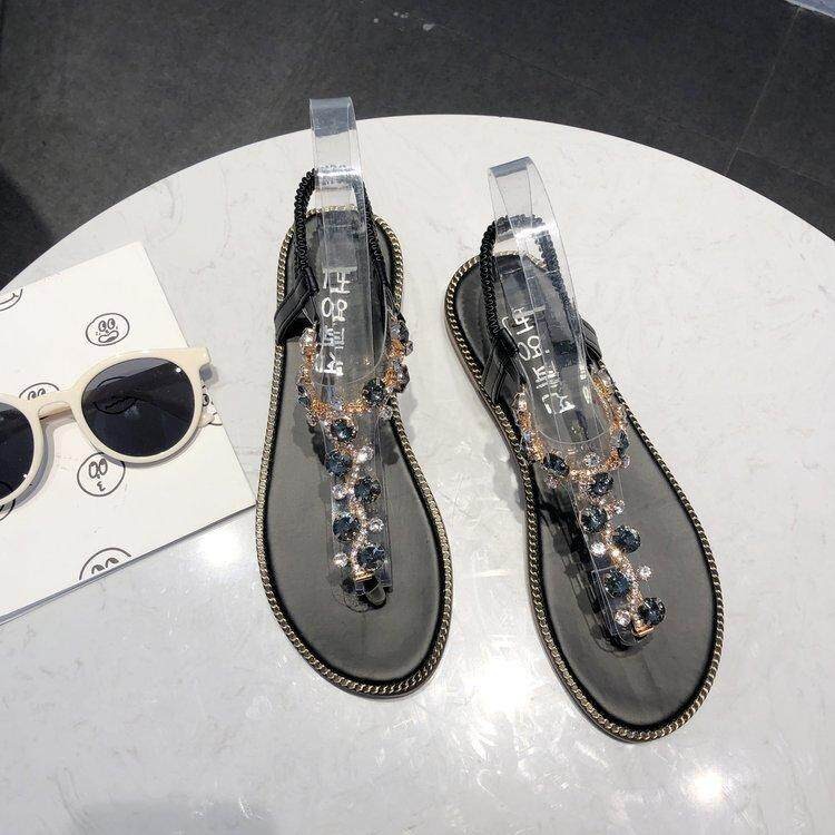 Women 's Sandals Flat Heel Split Toe Diamond Ankle Versatile Comfortable Herringbone