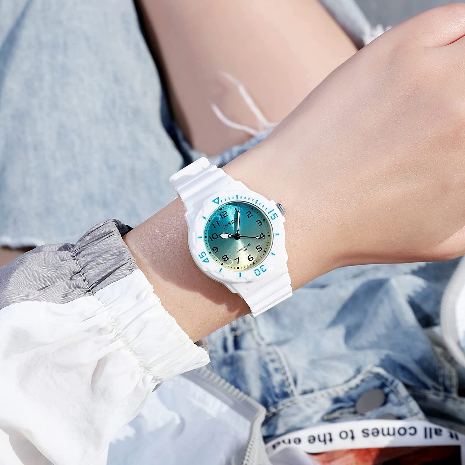 • Small Elegant Watch: The colorful watch featuring bi-directoinal bezel and round dial with 12-hour mark. Catch people's eyes in crowd easily.