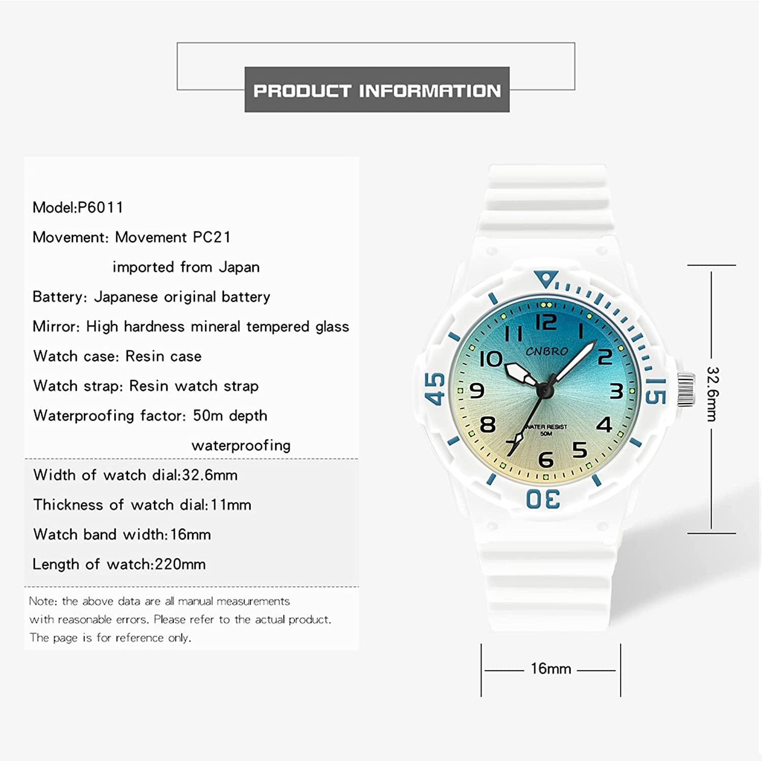 • Sport Watch: Adopt comfortable 16 mm resin band, 32.6 mm resin case and mineral dial window. A durable watch for any outdoor activities.